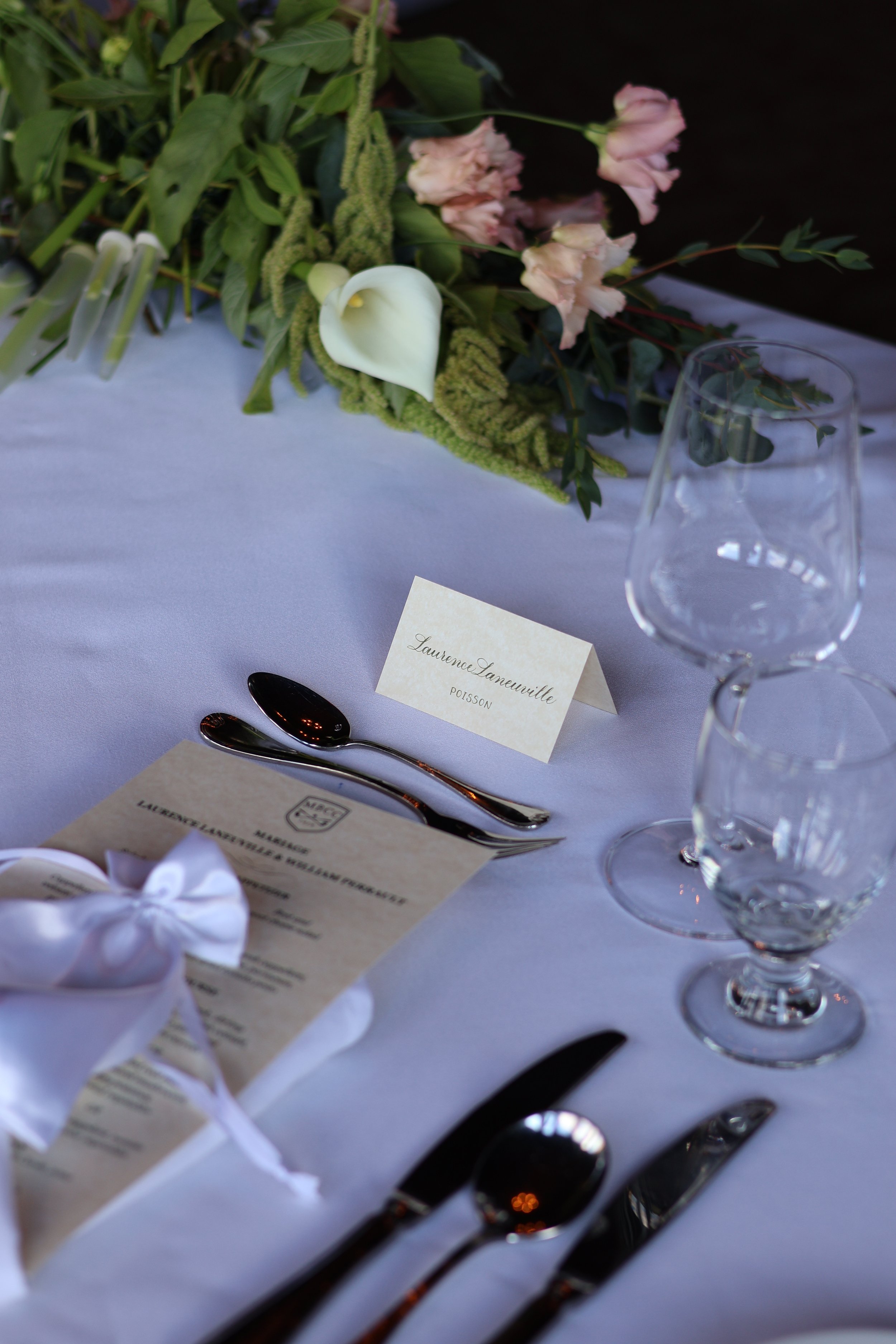 On voulait juste te remercier pour les incroyables affiches et marque-places à notre mariage. Tout le monde a été très impressionné par ton travail! C’était une magnifique touche personnalisée!